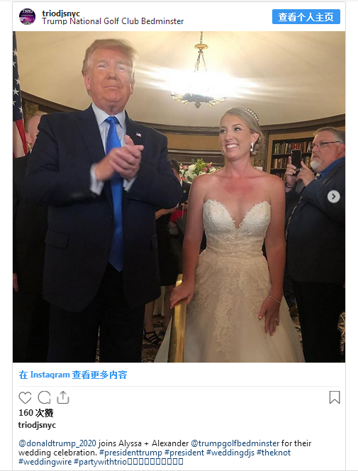 然而,社交网络上却曝光了特朗普不一样的周末。据美国白宫新闻记者报道,总统于上周五晚间抵达高尔夫俱乐部。上周六(8月3日),也就是美国得州埃尔帕索发生枪击案后,特朗普参加了正在其俱乐部举行的婚礼仪式。Instagram(照片墙)上还公布了现场照片。