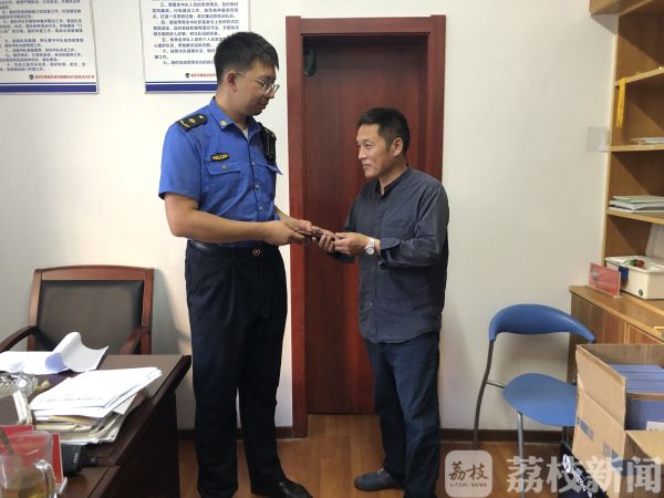 今天(8月5日)中午,南京市秦虹城管中队两名执法人员陈汉和李鹏在下班途中,发现龙蟠南路秦虹桥路面上静静地躺着一部手机!捡起查看发现外观屏幕完好无损,应该是被它的主人粗心遗落在此。