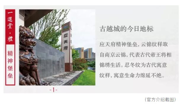 而近日有消息传出,项目内部墙体上原先的“应天府”已被替换成“應天園誌”( 简化字为:应天园志),售楼处对此给出了解释为,應天園誌是示范区的名字,楼盘具体改成了什么名称还没有确定的消息。