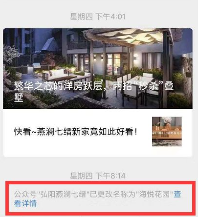 与其一路之隔的弘阳燕澜七缙也改名为备案名——海悦花园。