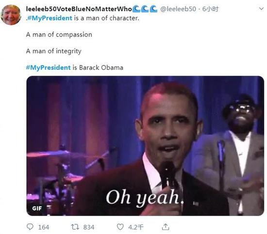 还有网友表示,“我的总统是一个有品格的人,是一个有同情心、正直的人,我的总统就是奥巴马。”