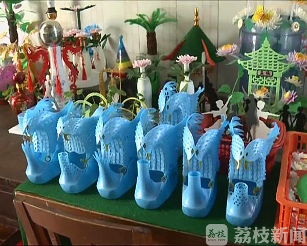很多市民家中都有废弃的塑料瓶,譬如矿泉水瓶、洗衣液瓶等等。普通人可能会随手将其当成垃圾处理,在盐城市区有一位民间的手工达人,他把这些废弃的瓶子,裁剪雕刻,巧妙地制成了手工艺品,不仅实用美观,更是受到了很多人的喜爱。