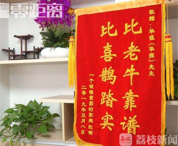 在华猛的工作室内,记者看到了一面锦旗,上面写着:比老牛靠谱,比喜鹊踏实。这面锦旗代表着张先生夫妻真挚的感谢。今年3月,张先生夫妻感情出了问题,他的朋友就找到华猛,让他帮忙劝和。