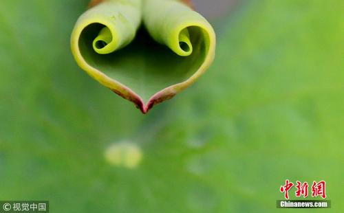 资料图:荷叶卷起大自然的“爱心”。 图片来源:视觉中国