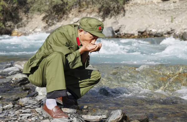 险也罢,美也好,老兵们不动声色。对他们而言,再上天山,重走天山公路,是一次圆梦之旅,也是一次精神回归。一路上,山无语,默默守望,像是在给老兵们行注目礼。过“老虎口”,经乌兰萨德克道班,驻车停留,谭广生终究没能克制住内心的激动,全然不顾危险,奔下山坡,冲向山谷,双手掬起一捧冰冷刺骨的河水。“真甜!”他说。时隔数十年后,看见当年自己吃尽人间苦参加修筑的天山公路,如今成了旅游胜地,他感到无比自豪。