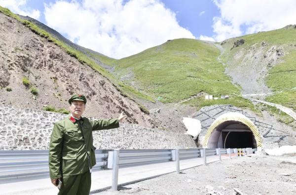 老兵胡永胜在玉希莫勒盖隧道前讲述当年参与修筑时的情景