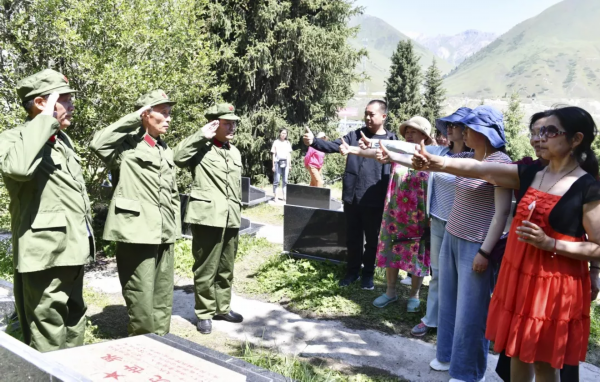7月的乔尔玛,一改往常的宁静,前来瞻仰烈士陵园的各族群众挤满了纪念馆。为烈士守墓34年的天山筑路老兵陈俊贵告诉报道组,得益于淮安“八百勇士 天路筑梦”新闻行动的广泛宣传,7月份到乔尔玛烈士陵园瞻仰的各族群众,每天超过5000人。