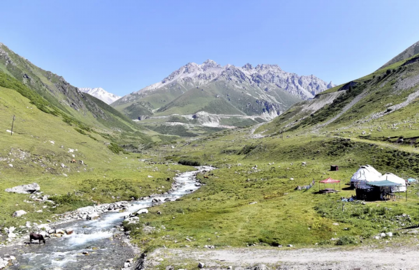 离开乔尔玛,沿天山公路继续往南,路在山腰盘旋,九曲十八弯,途中经过巴音布鲁克。蓝天白云下,羊儿在吃草,马儿在奔跑,一个个白色的毡房,像珍珠般散落在辽阔的草原上。从早上7时30分出发,到晚上10时30分抵达天山公路的南端终点——库车,此次重走天山公路历时15个小时。