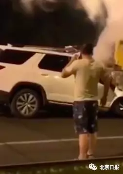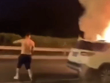 救火小伙儿帕鲁克 7月16日凌晨,刚参加完朋友聚会的帕鲁克,驾车经过南四环外环主路十八里店南桥西侧时,恰好目睹了SUV追尾铲车并起火自燃的一幕。“当时火已经着起半人高了,车头都几乎撞没,我连忙把车停到应急车道上,下车后才听周围人说车里还有人。” 车头已燃起明火,车内还有受困人员,情况十分紧急!当时,现场已经聚集起不少围观人群,但面对已经着起明火的车辆,没人敢上前。