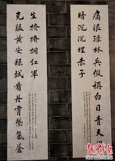 黄麻起义和鄂豫皖苏区革命历史纪念馆内悬挂的第一次称“红军”的对联。 中国青年报·中国青年网见习记者 罗伊璠/摄