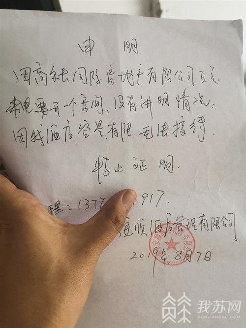 见到这么多人要集体到宾馆洗澡,宾馆老板直言无法接待。他告诉记者,当时高尔夫国际花园的开发商只在宾馆预订了一间房,并未告知他做何用途,如今安排小区所有业主到一间房洗澡,真是开了国际玩笑。“我马上写了申明,接待不了。”宾馆老板说。