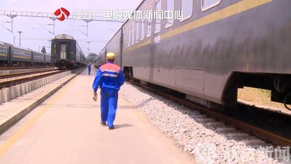 上午十点半,骄阳似火,在泰州火车站列车整备所,几位身穿蓝色长袖的列车调车工正在紧张地工作着。他们在指挥长的统一调配下,将需要检修的车厢摘解,换上检修过的车厢。