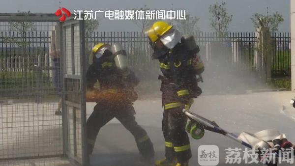 而在南通通州区消防大队训练场,消防员正在进行火灾救援训练,35度的高温下,消防员穿着60多斤的防火服,仅仅几分钟的时间就已经浑身大汗了。