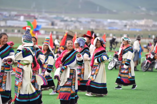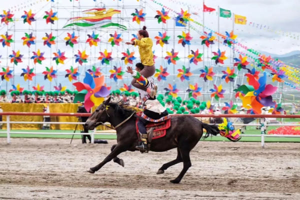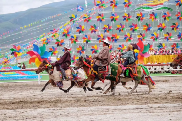 传统的“当吉仁”赛马节主要以马长跑、马中跑、马短跑、走马、跑马射箭、马上捡哈达等为主要竞技内容。随着时代和社会的发展,赛马节近几年还增加了锅庄舞会、抱石头、拔河、赛牦牛、服饰表演等多项文艺活动。