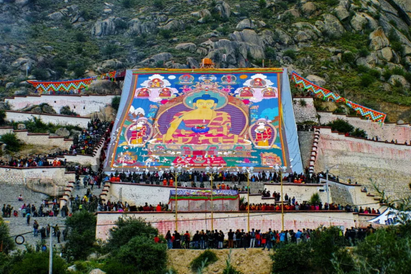 作为节日的序幕,哲蚌寺展佛是最令人瞩目的仪式。