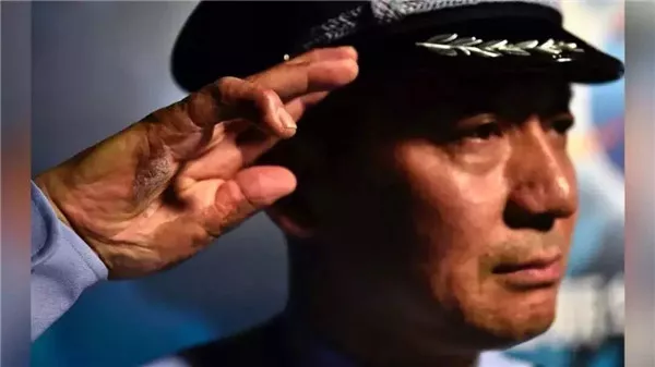 张保国在敬礼,因排爆而受伤的手指已严重变形。郭绪雷 摄