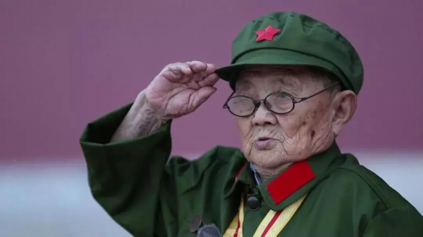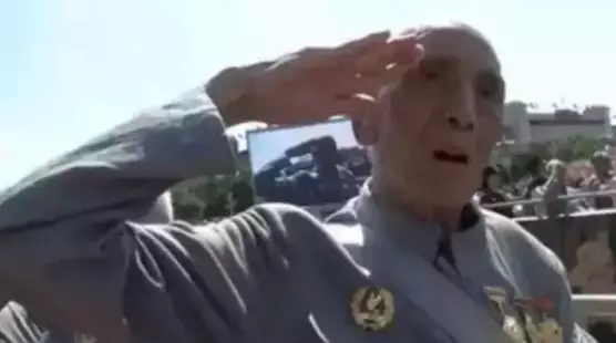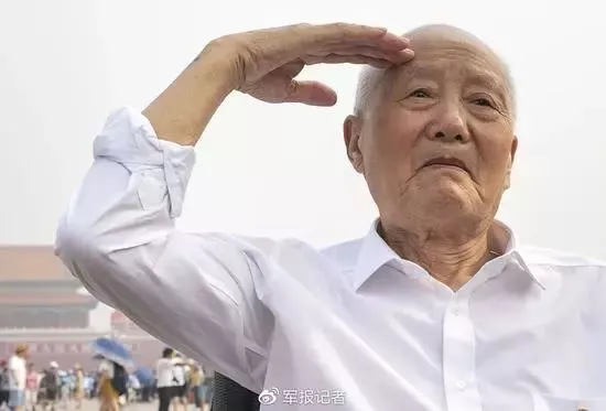 2019年7月27日,老英雄张富清向人民英雄纪念碑敬礼。新华社记者 熊琦 摄