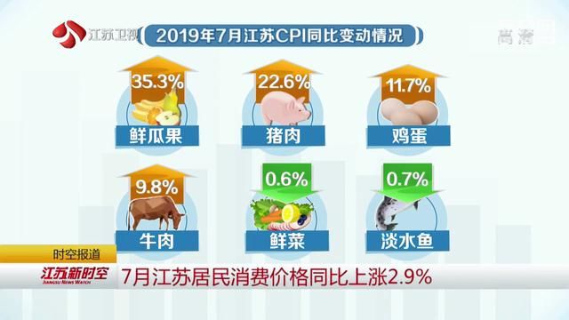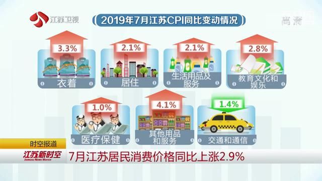《江苏新时空》记者8月9号从国家统计局江苏调查总队获悉,7月份江苏居民消费价格同比上涨2.9%。