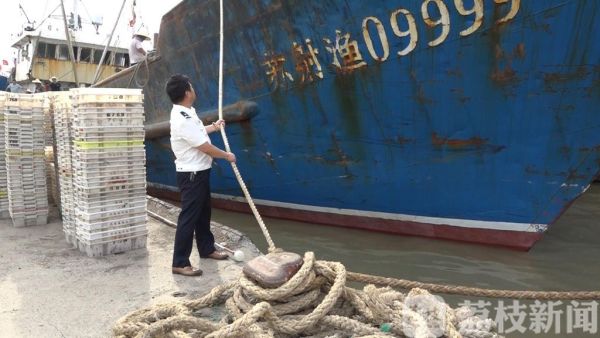 在记者采访过程中,仍有不少外籍渔船在陆续进港,港口的风力有四级左右。目前,港口已经封港,所有进港渔船停泊到码头,禁止出海。