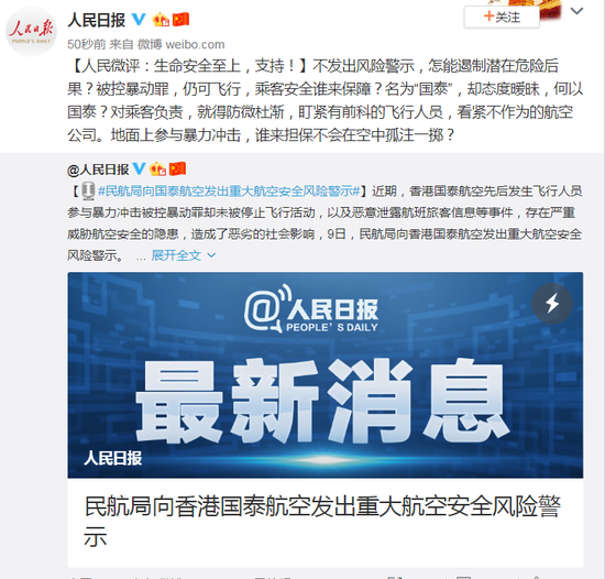不发出风险警示,怎能遏制潜在危险后果?被控暴动罪,仍可飞行,乘客安全谁来保障?名为“国泰”,却态度暧昧,何以国泰?对乘客负责,就得防微杜渐,盯紧有前科的飞行人员,看紧不作为的航空公司。地面上参与暴力冲击,谁来担保不会在空中孤注一掷?