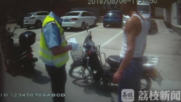 8月6日上午11点多,泰兴市交警大队虹桥中队民警巡逻时发现,路边停放着两辆车牌号一模一样的摩托车,随即下车询问车主于某,于某没有回避,直接说出了原因所在。