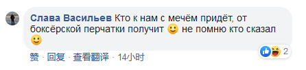 “有句话是这么说的,谁带着剑(恶意)来,谁就会倒在(我们的)拳击手身旁!”↓