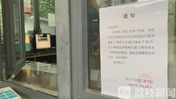 随后,记者又来到南京市第八中学和南京市金陵汇文学校,这两所学校一直是校园体育设施对外开放做得比较好的学校。不过,今年暑假两所学校都因为对运动场等设施进行升级改造,暂停对外开放。“你修好再过来运动,晚上7点到9点,踢足球、打篮球、跑步都可以,到时候就把身份证带来刷一下。”南京市金陵汇文学校工作人员说。
