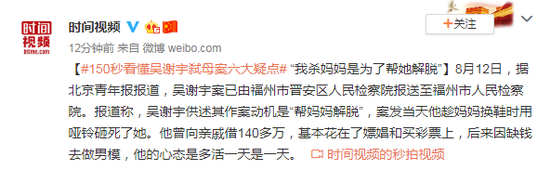 8月12日,据北京青年报报道,吴谢宇案已由福州市晋安区人民检察院报送至福州市人民检察院。报道称,吴谢宇供述其作案动机是“帮妈妈解脱”,案发当天他趁妈妈换鞋时用哑铃砸死了她。他曾向亲戚借140多万,基本花在了嫖娼和买彩票上,后来因缺钱去做男模,他的心态是多活一天是一天。