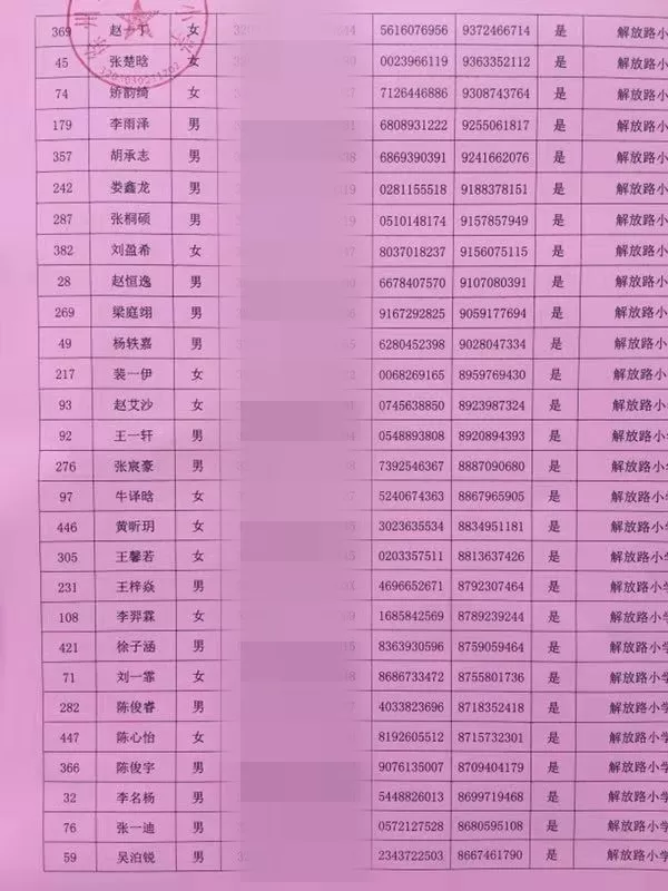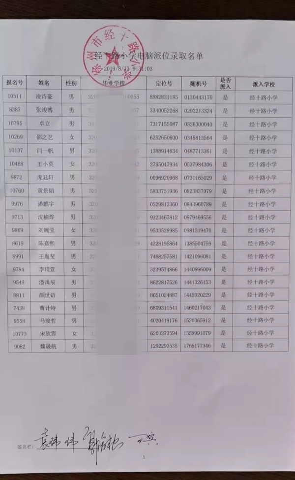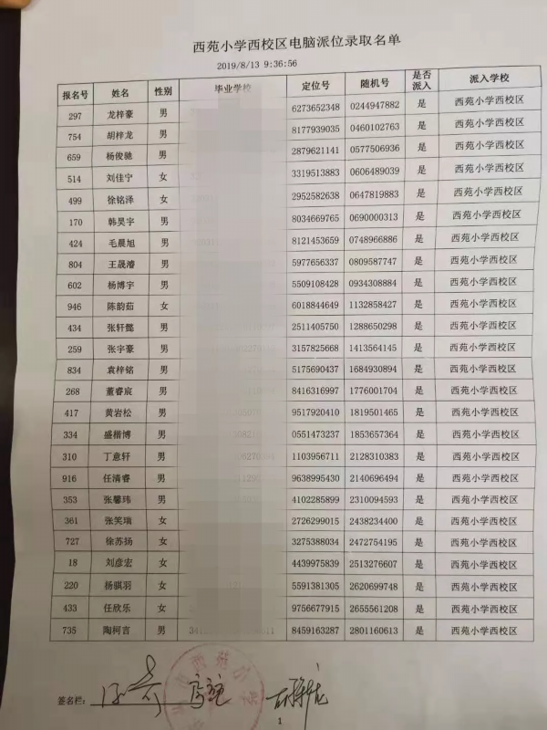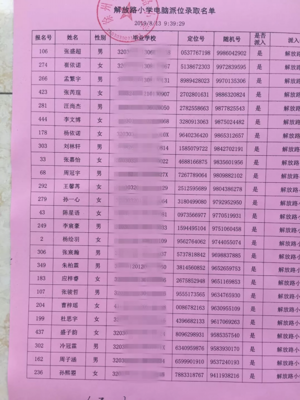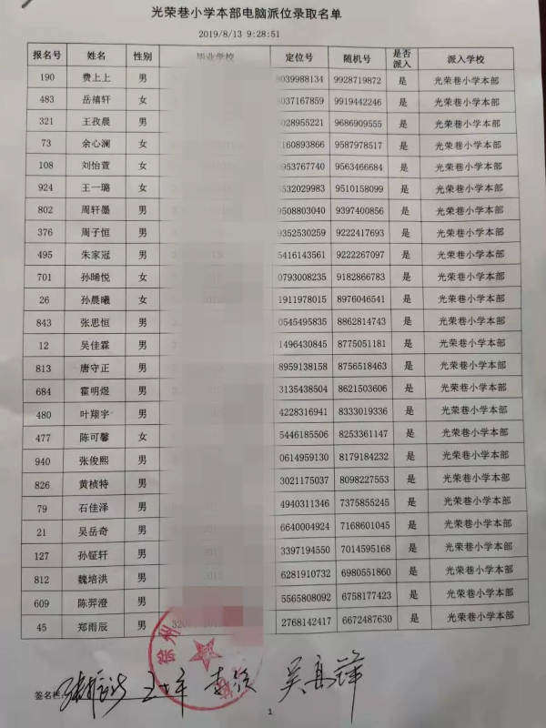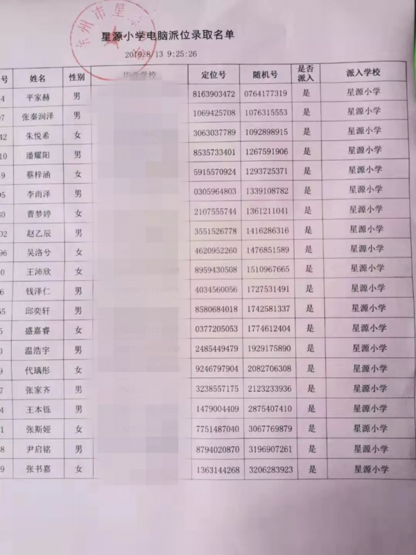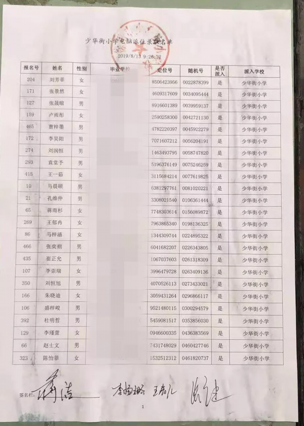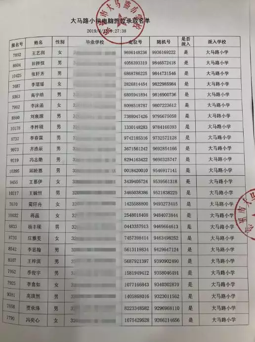 17所学校派位名单公示如下