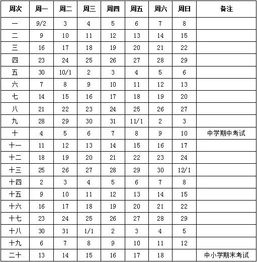 2、2019~2020学年度第一学期中小学幼儿园均于2019年9月2日开学(8月31日新生报到,9月1日其他年级学生报到)。
