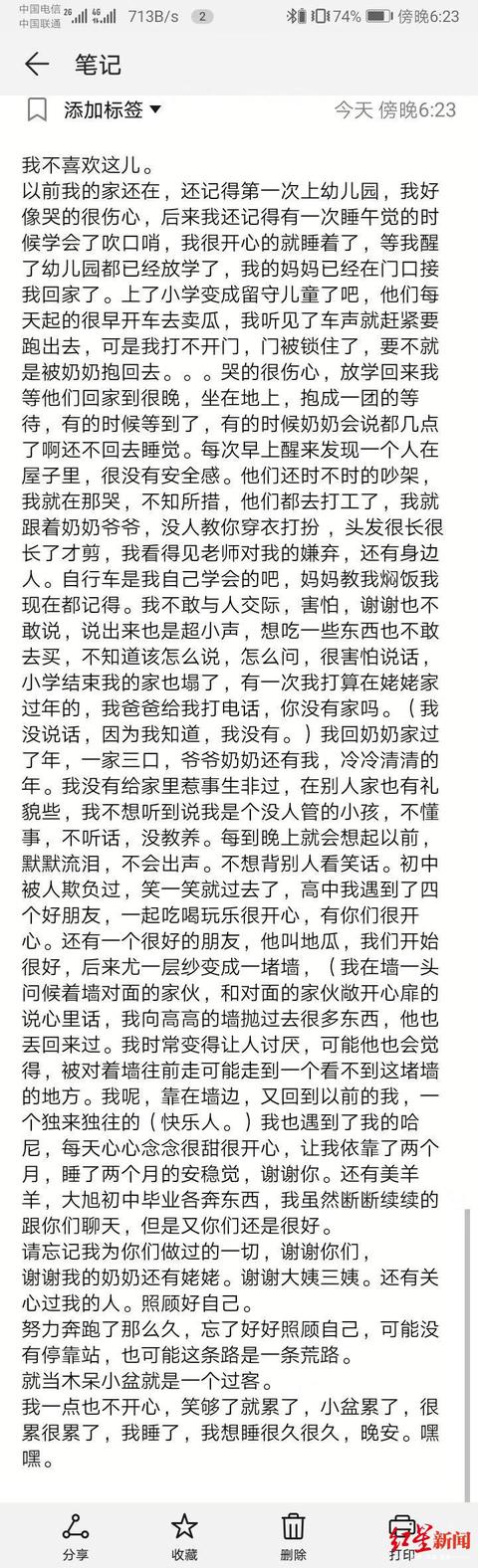 在这条“告别”消息里,王忠民回忆了自己小时候的一些经历,说自己不喜欢这个地方,过得一点也不开心。在向所有关心过他的人道谢后,他说他很累,想睡很久很久的觉……