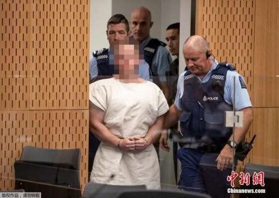 资料图:当地时间2019年3月16日,新西兰克赖斯特彻奇,被控参与克赖斯特彻奇清真寺枪击案的嫌犯在当地法院出庭受审。