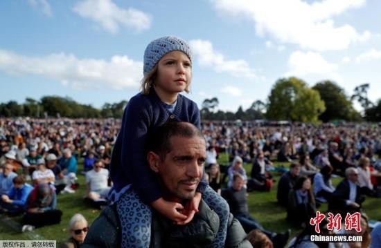 资料图:当地时间2019年3月29日,新西兰在克赖斯特彻奇市哈格利公园举行国家纪念仪式,致哀清真寺枪击案遇难者。图为参加纪念仪式的民众。