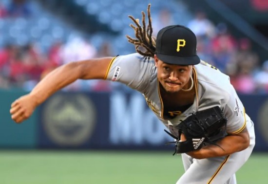 海盗先发投手阿彻上来就连飙两次三振,包括特劳特,虽然他之后被大谷翔平击出了安打,但是第一局也没有失分。