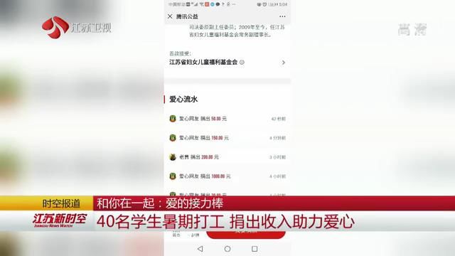 由江苏广电总台融媒体新闻中心联合江苏省妇联、江苏省妇女儿童福利基金会、江苏省关心下一代基金会发起的"和你在一起·萤火虫书房"公益行动众筹账户最近收到一笔特殊的捐款。它来自40名高三毕业生。这笔捐款背后有什么故事呢?