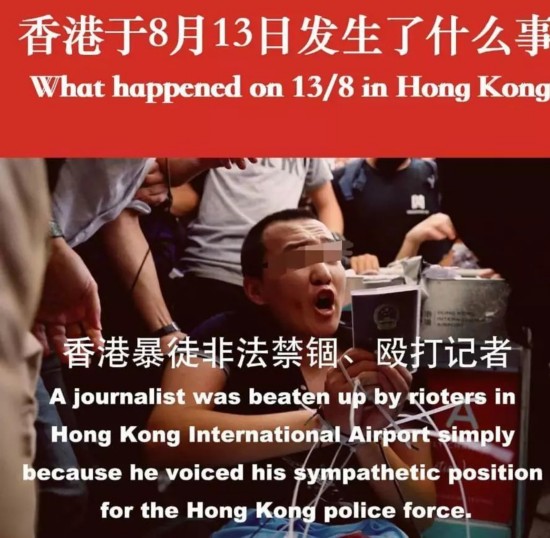 大家都知道,近来我国香港特区正遭到一伙极端示威者和妄想让香港从中国分裂出去的暴徒的袭击。比如,前两天他们就在香港机场制造了严重的暴乱,暴力殴打了一名内地游客和一名《环球时报》的记者。