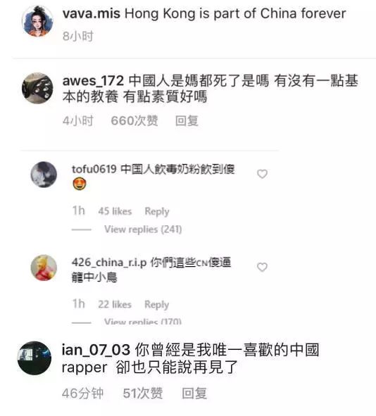 但他们的正义言论却很快遭到了极端抗议者、乱港暴徒以及他们的支持者的围攻。比如VaVaMiss因为表示“香港永远是中国的一部分”,就遭到暴徒们恶毒的侮辱;艾福杰尼则遭到这些极端分子威胁要“取关”他。