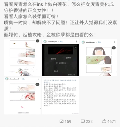 不仅如此,这些粉丝们还在中国境内的微博等平台互相分享和交流着怎么在境外的社交平台上与这些极端分子和网络暴徒辩论的经验,该采用什么战术等等。