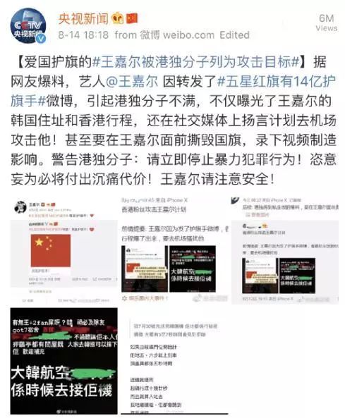 另外,一些新成为香港极端分子围攻对象的爱国爱港艺人的粉丝,也在微博等境内社交平台上呼吁大家去支持和帮助自己的“爱豆”: