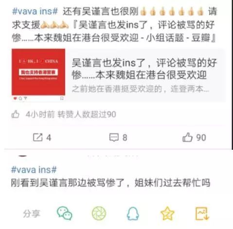 ▲图为粉丝们与中国说唱歌手VaVaMiss一起反击极端分子