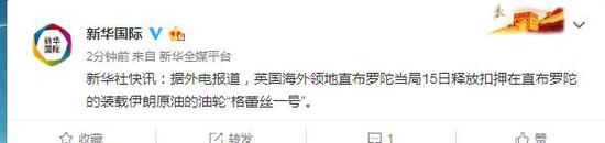 新华社快讯:据外电报道,英国海外领地直布罗陀当局15日释放扣押在直布罗陀的装载伊朗原油的油轮“格蕾丝一号”。