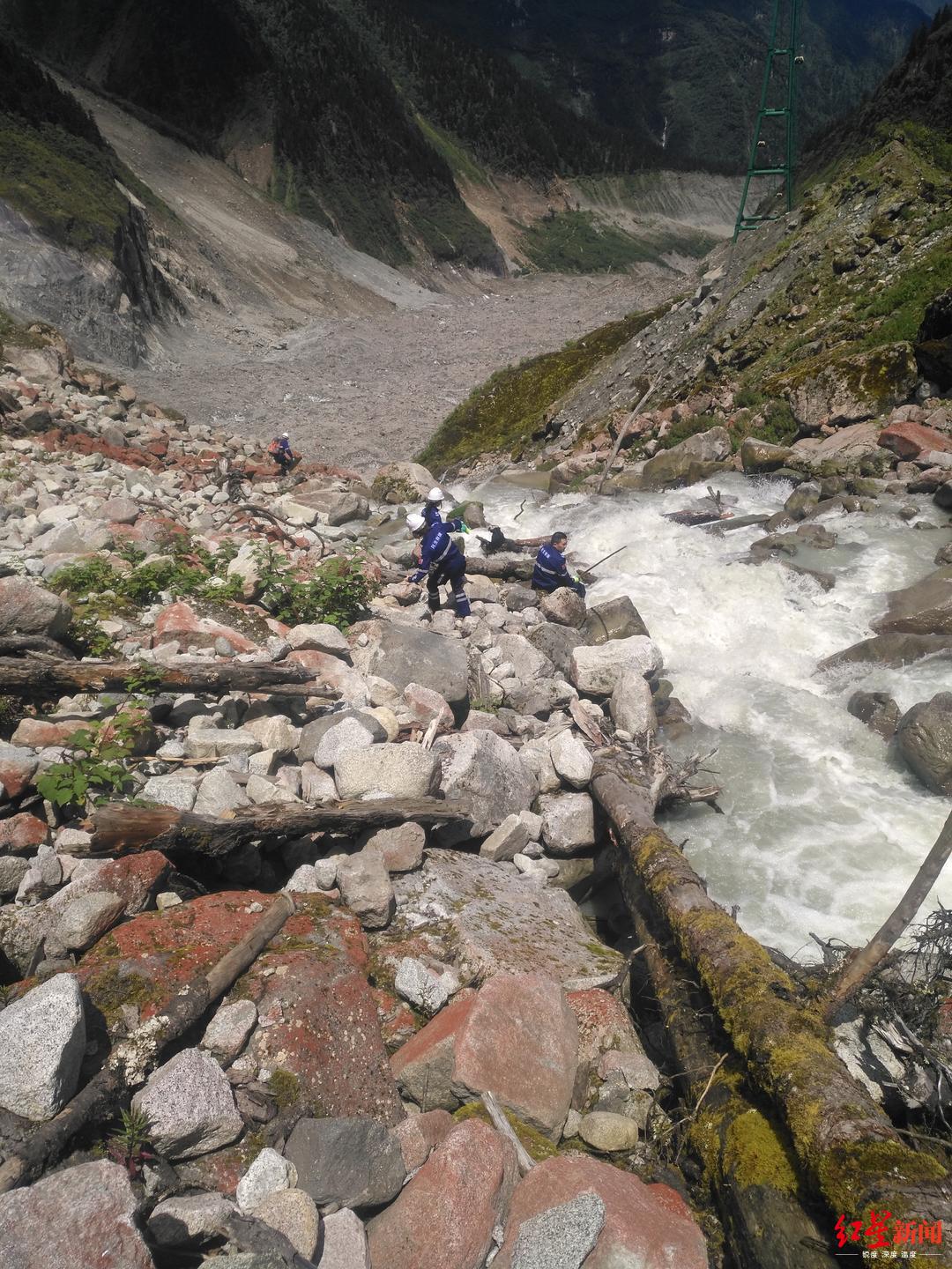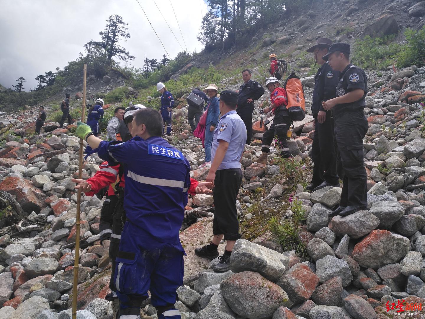 8月15日上午,当地公安分局、景区管理局配合四川民生救援队、山地救援队,共计20余人,带着专业设备上山对冰洞进行排查。他们沿着孩子消失的位置分两队,一队顺着溪水往下游支流搜寻,另一队从主河道到冰洞口往上排查。