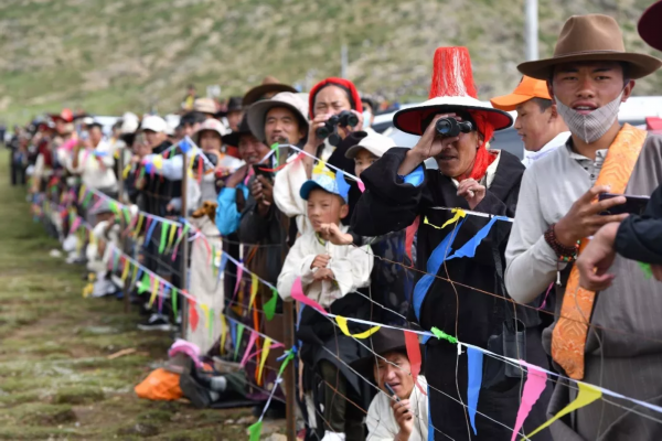 8月10日上午,在赛马场举行了马5000米预赛。赛马自古以来就是当雄牧民群众的传统习俗,八月的羌塘草原绿草如茵,充满生机与活力,选手们充满激情和力量,马儿膘肥体壮,正是赛马最好的时节,牧民群众通过赛马书写并守护着羌塘草原古老的传统。