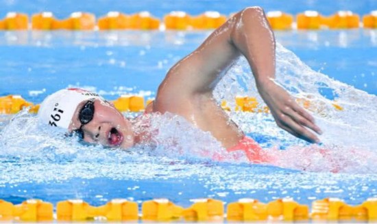 二青会,王简嘉禾夺得体校甲组女子1500米自由泳冠军。图片来源:新华社