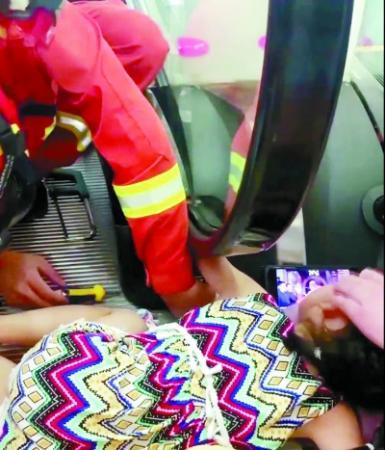 很快,消防救援人员赶到现场。消防员一边安抚小女孩,一边使用刀片和螺丝刀小心翼翼地对手扶电梯进行拆卸,10分钟后,小女孩被成功救出。