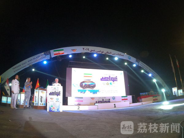 随后,赛事总裁判长宣布各队比赛名次。在现场观众的热烈欢呼和掌声中,取得名次的参赛队一一走上台,由俄伊两国海军领导和伊朗基什岛当地官员为其颁发奖杯、奖牌和奖品。至此,历时7天的“深海”国际潜水员比赛正式落下帷幕。