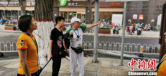 文庙街办阳光志愿服务U站志愿者为路人指路。志愿者供图