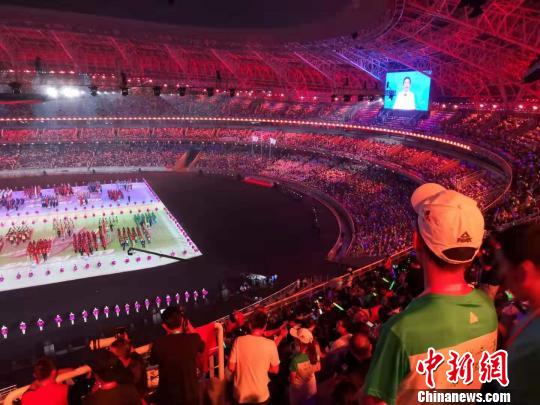 志愿者在二青会开幕式维持秩序。 李新锁 摄