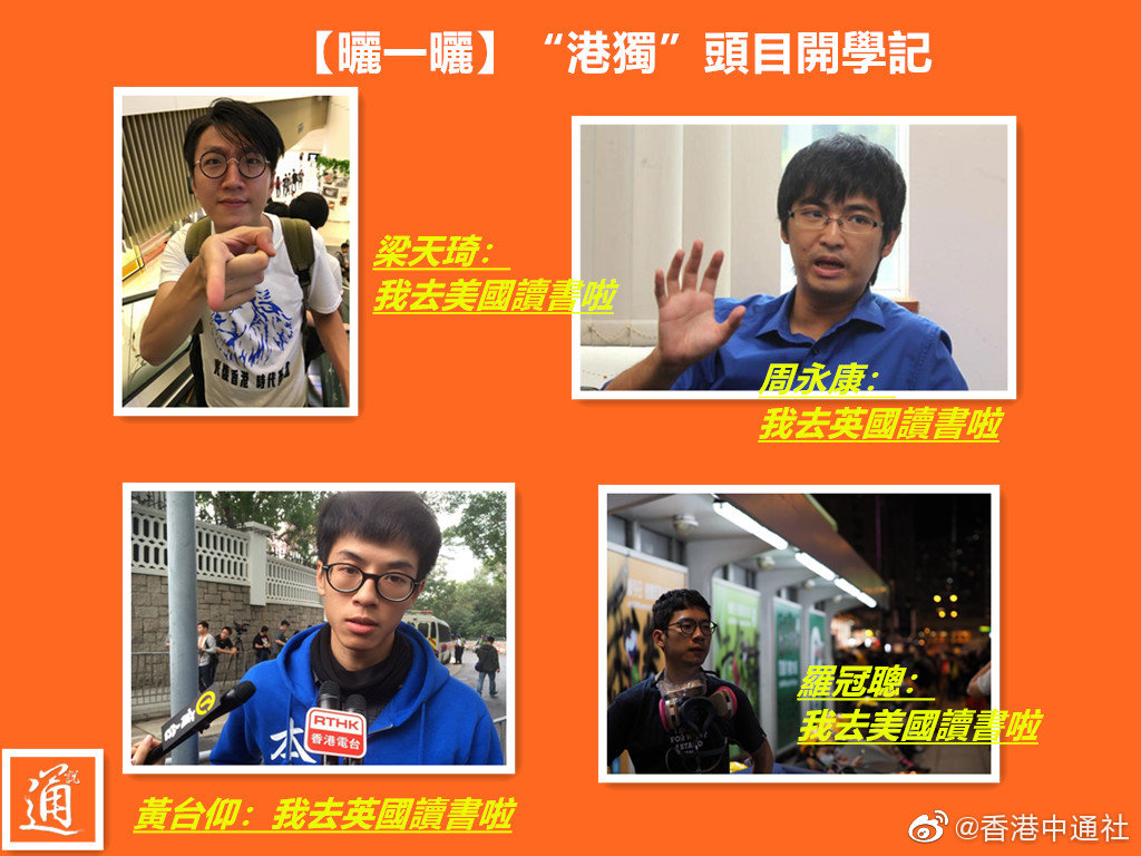 四位“港独”头目都已出国上学