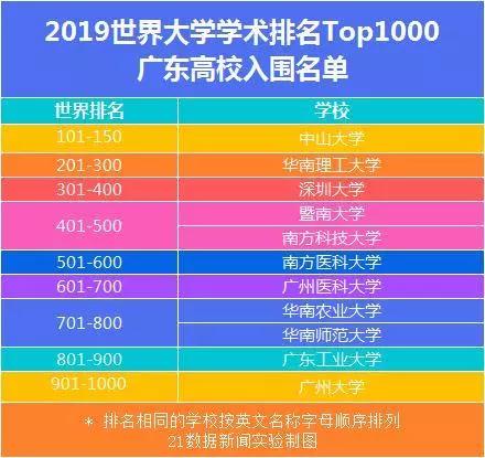 中山大学在广东省内排名第一,位居全球101-150位;